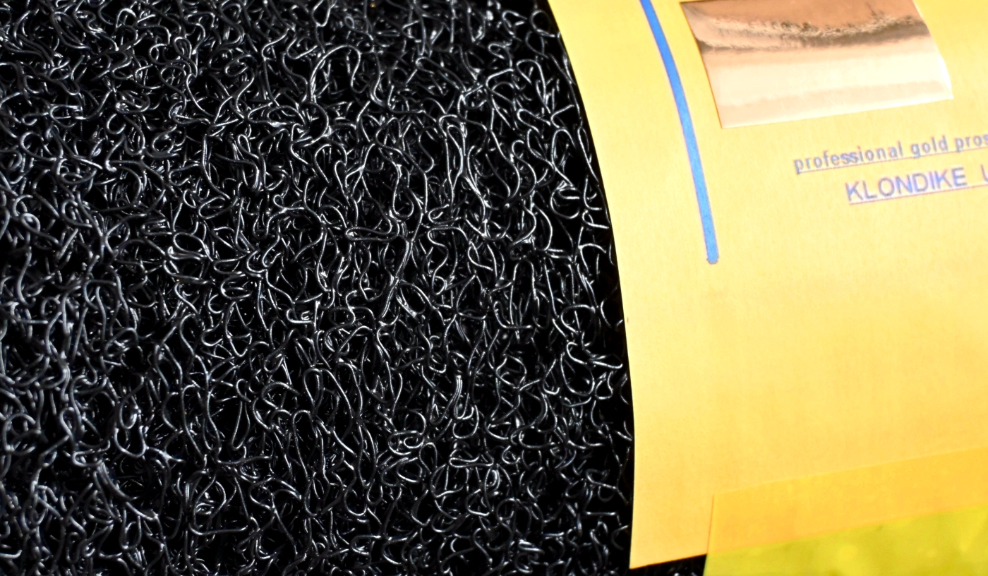 Unikátní rohož, pro zachycení zlatinek při rýžování zlata pomocí rýžovacího splavu.